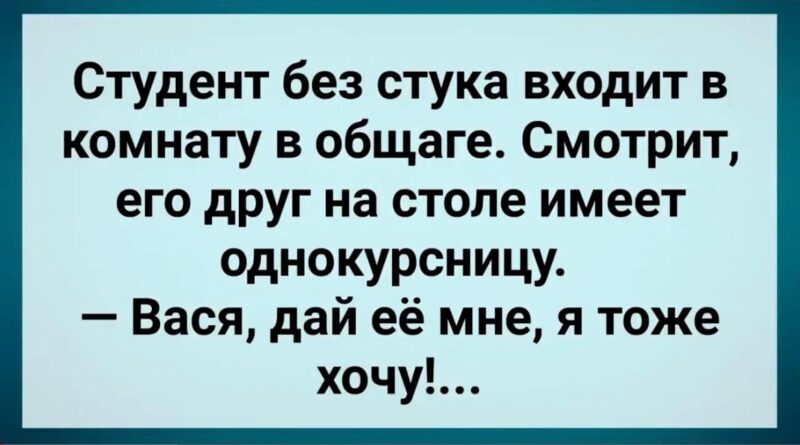 Read MoreСтудент без предупреждения распахивает дверь комнаты в общежитии.Останавливается на пороге и видит: его друг Вася сидит за столом вместе с