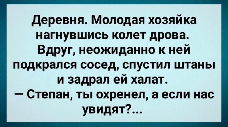К ней подкрался сосед Степан. Народ в деревне про него говорил: «Степан — мужик весёлый, но шутки у него такие, что хоть стой, хоть падай». И вот именно в этот момент ему взбрело в голову разыграть соседку.