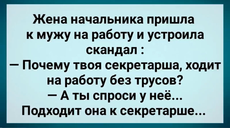 — Ах вот оно что! — вскрикнула Мария, переводя взгляд с мужа на секретаршу. — Артём! Объясни мне, пожалуйста, почему твоя секретарша ходит на работу без трусов?!