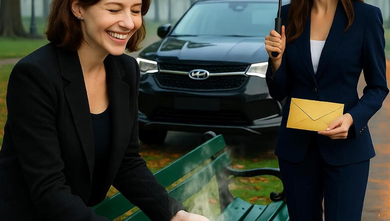 Из машины вышла молодая женщина. Высокая, в строгом синем костюме, с аккуратной причёской. В руках — зонт и конверт, запечатанный золотой восковой печатью.