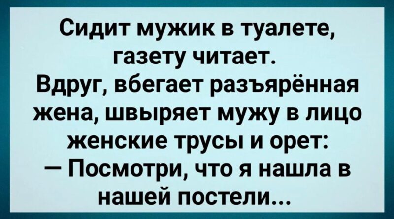 Они оба смеялись, представляя заголовки: «Муж попал в газету», «Женские трусы атакуют утро» и «Сосед сверху в шоке».