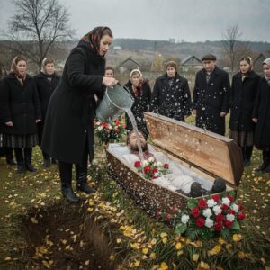Она подходила медленно, словно каждый шаг был частью сложного ритуала. Её глаза блестели от воспоминаний, боли и гнева. Все ожидали слёз, прощальных слов, покорности судьбе. Но вместо этого она опустилась на колени и достала ведро с ледяной водой.