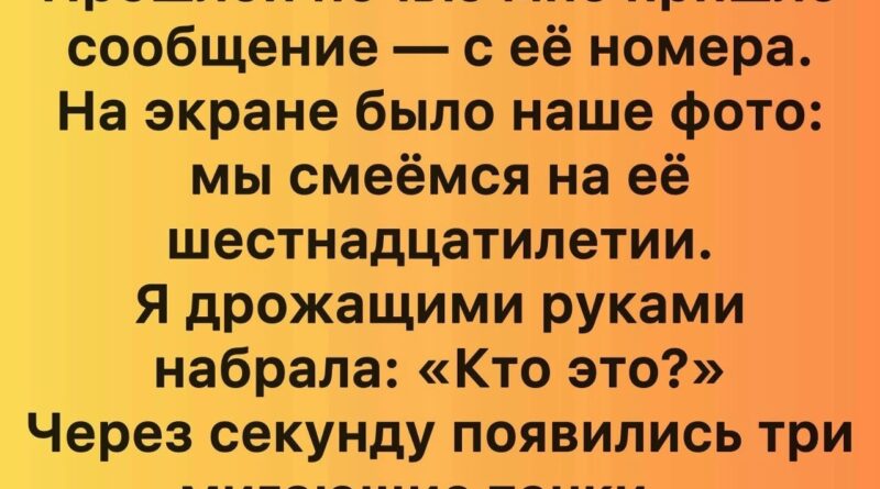 Мои руки дрожали, но я не могла отвести взгляд. В этот момент я поняла — это не просто сообщение. Это послание, которое перешагнуло границы жизни и смерти.