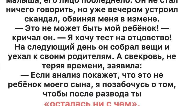 Когда он медленно поднял взгляд на меня, в комнате повисла такая тишина, что было слышно, как на кухне тикают часы. Эти секунды растянулись, как бесконечность. Я стояла у окна, прижимая к груди нашего сына. Малыш тихо сопел, не подозревая, что его крошечная жизнь уже стала причиной бури, которая могла разрушить нашу семью.