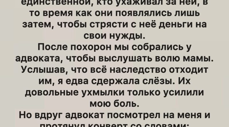 Read MoreВведение Я никогда не думала, что день, когда мы будем слушать завещание мамы, станет для меня не концом, а началом.