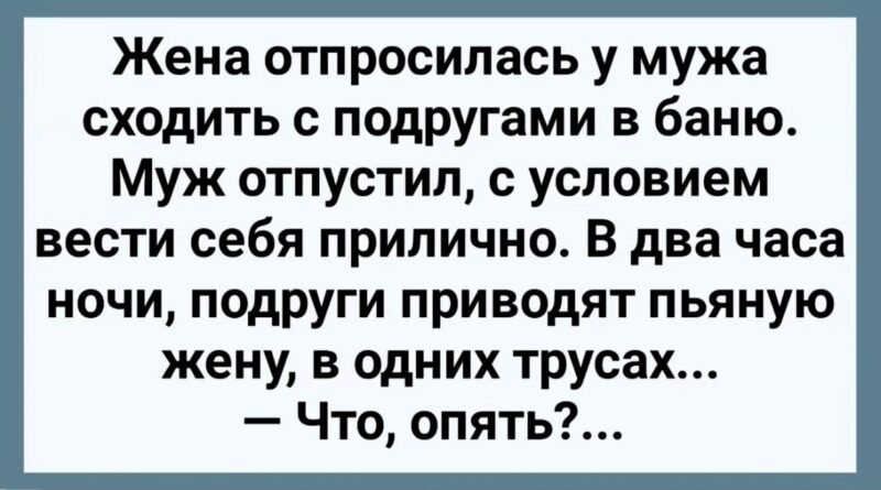 Read MoreБаня, ночь и невероятные приключения Жена отпросилась у мужа: — Дорогой, я сегодня с подругами в баню, можно?— Можно, —