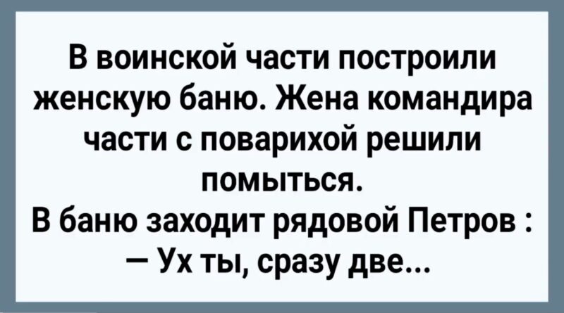 Read MoreВ воинской части наконец-то построили женскую баню. Событие было почти историческим: комиссию из округа ждали, командир части ходил гордый, как