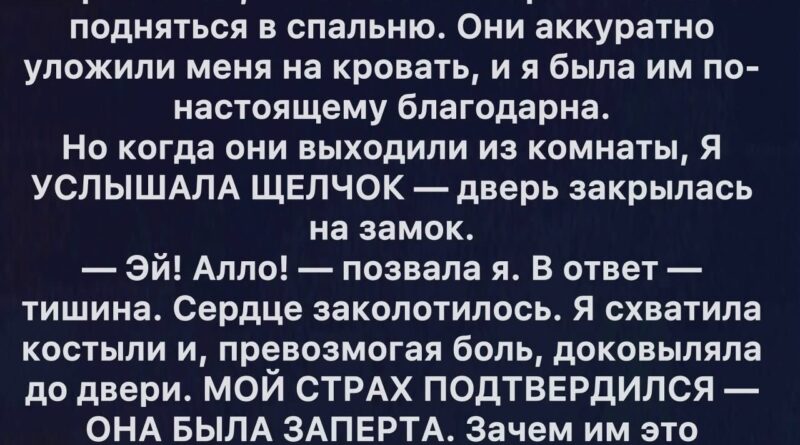 Я лежала на кровати, стараясь не двигаться лишний раз — каждое малейшее движение отзывалось тупой, тянущей болью в колене. Гипс был тяжелым, непривычным, будто чужим. Казалось, что моя нога больше не принадлежит мне, а просто лежит рядом — неподвижная, холодная, чужая.