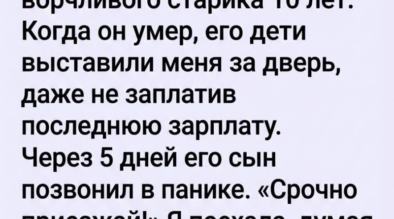 Я вставала в шесть утра, готовила ему завтрак, помогала одеваться, следила за лекарствами. Он не доверял никому, кроме меня — хотя никогда этого не признавал. Его дети появлялись редко. Очень редко.