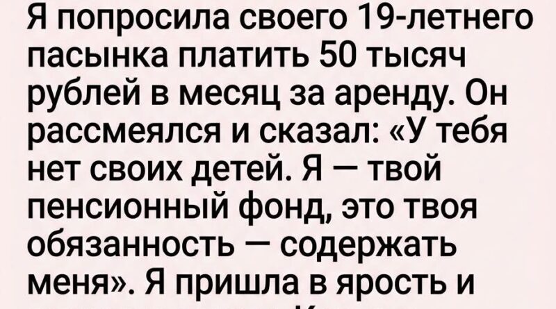 — Я больше не могу содержать тебя. Ты взрослый. Если ты хочешь жить здесь, ты должен платить. Пятьдесят тысяч рублей в месяц.