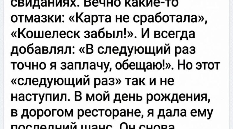 Как он каждый раз «забывал». Как смеялся, переводил тему, обещал «в следующий раз». Как легко принимал мою щедрость, моё терпение, моё желание быть понимающей.