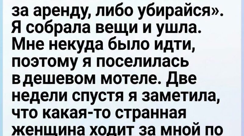 Сначала это было едва уловимое ощущение — будто кто-то смотрит. Потом я увидела её у магазина через дорогу. Женщина стояла возле витрины, но не смотрела на неё. Она смотрела на меня.