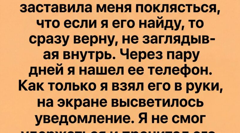 — Если ты найдёшь мой телефон… — сказала она, не глядя на меня. — Пообещай, что не будешь в него заглядывать. Просто вернёшь.