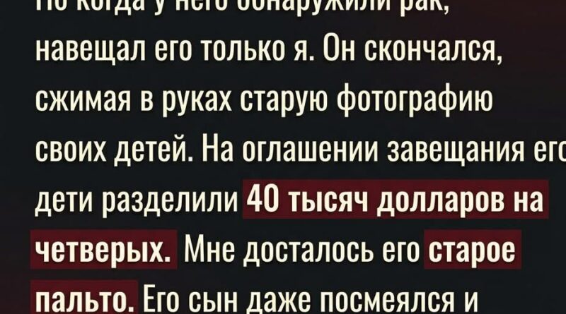 Его дети приходили редко. У них были дела, работа, семьи. Они приносили фрукты, сидели полчаса и уходили. Иногда даже не скрывали раздражения.