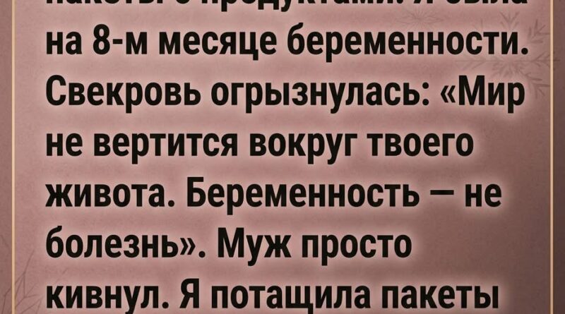 Я почувствовала, как внутри всё сжалось. Соседи… значит, кто-то видел, как я вчера тащила пакеты, еле передвигаясь по лестнице, потому что лифт не работал. Или слышал слова свекрови. Или заметил, как я остановилась на площадке, держась за перила, пытаясь не расплакаться.