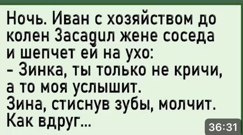 — Зинка… ты только не кричи. А то моя услышит.