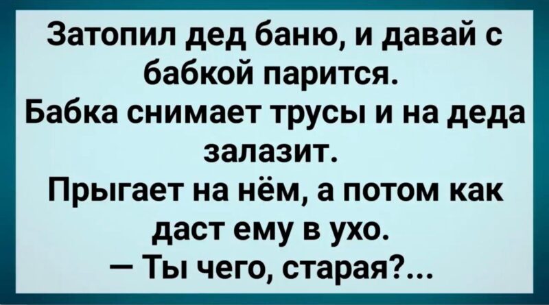 — Пётр, — сказала бабушка между смехом, — у нас с тобой получилась целая банная комедия!
