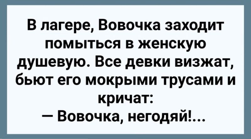 После обеда Вовочка решил пойти в душ. Он знал, что девушки, проживающие в соседнем корпусе, пользуются душевыми отдельно, но любопытство и дух приключений взяли верх. Он тихо прокрался к женской душевой, думая, что сможет просто взглянуть и быстро уйти.