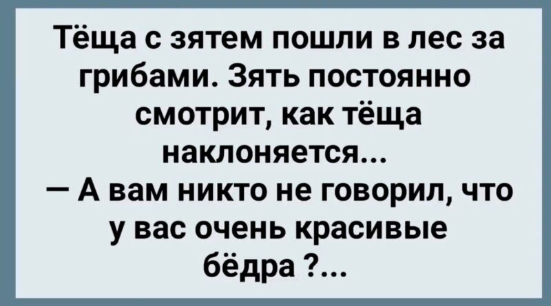 Read MoreТёща и зять отправились в лес за грибами. Погода стояла ясная, солнце пробивалось сквозь кроны деревьев, а лёгкий ветерок шуршал