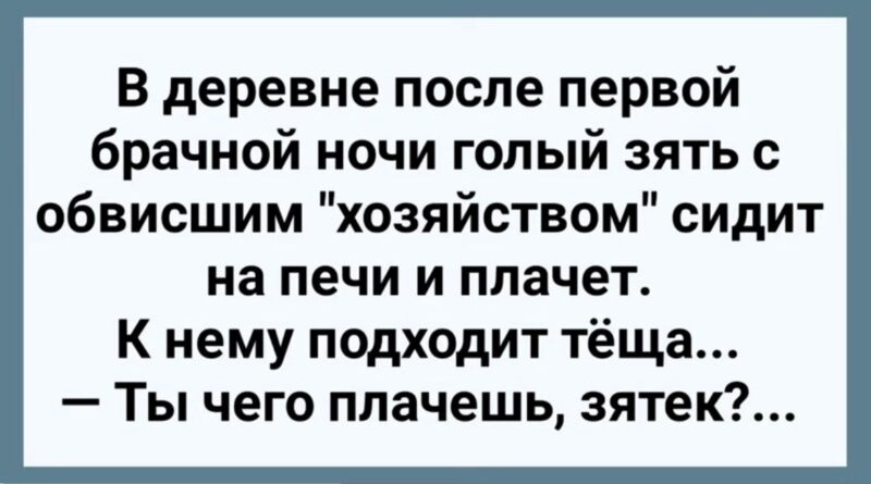 Со временем зять стал примером для других молодых людей в деревне. Его история о том, как он преодолел страхи и смущение, вдохновляла многих. И хотя анекдот о «печальной первой брачной ночи» продолжал жить в деревне, теперь он рассказывался не с насмешкой, а с уважением и теплотой, как урок о человеческой стойкости, заботе и любви.
