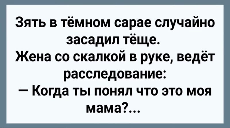 Зять в тёмном сарае случайно засадил тёще. Жена со скалкой в руке ведёт расследование: «Когда ты понял, что это моя мама?»
