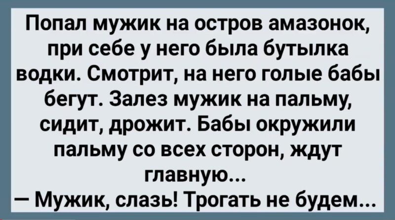 Попал как-то раз самый обыкновенный мужик, по имени Степан Петрович, на остров амазонок. Как именно он туда угодил — история туманная и запутанная. То ли на рыбалке задремал в лодке, то ли друзья подшутили, то ли судьба решила, что слишком уж размеренной стала его жизнь. Очнулся он ранним утром на песчаном берегу, под шум прибоя и крики незнакомых птиц.