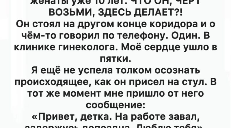Я почувствовала, как дрожь пробежала по всему телу. «Он здесь, один, и он что-то скрывает», — думала я, хотя разум упорно искал рациональные объяснения. Может быть, это просто проверка здоровья для работы? Или он сопровождает кого-то из коллег? Но внутренний голос не давал покоя: «Нет, это что-то другое. Ты это почувствовала».