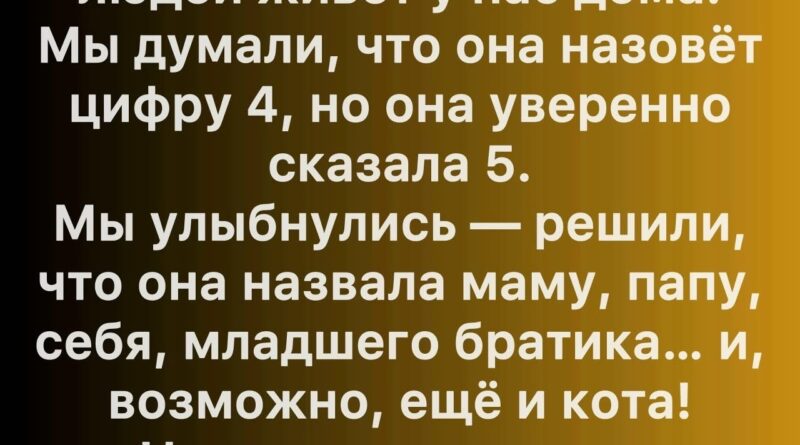 В тот день ничто не предвещало особенного. Обычное утро, тихий дом, детский смех — и простой вопрос, который родители задали своей двухлетней дочери, уверенные, что знают ответ. Но дети часто удивляют. И её уверенный, совсем не детский ответ открыл не только неожиданную арифметику маленького человека, но и кое-что о том, как дети ощущают любовь, близость и присутствие тех, кого взрослые могут даже не замечать.