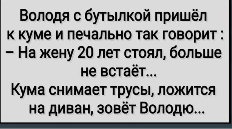 — На жену двадцать лет стоял… А теперь не встаёт.
