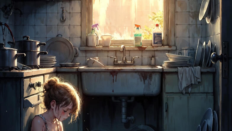 Сегодня всё было особенно тяжело. Жара стояла такая, что даже стены казались горячими. Крошечная кухня превращалась в печь, где воздух был густым, как дым. Девочка чувствовала, как у неё мутнеет в глазах, но продолжала работать — потому что знала: упасть — значит получить новые наказания.