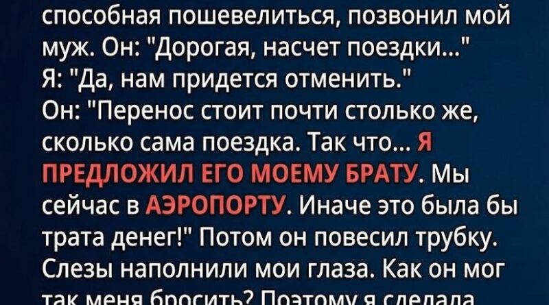 — Дорогая, насчет поездки… — его голос был бодрым, почти без эмоций.