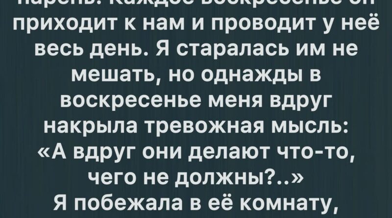 Они снова ушли в комнату. Дверь снова прикрылась. Но теперь я не стояла на кухне, прислушиваясь. Я села за стол, налила себе чаю и впервые за долгое время позволила себе просто… быть. Не сторожем. Не контролёром. Просто матерью, которая рядом.