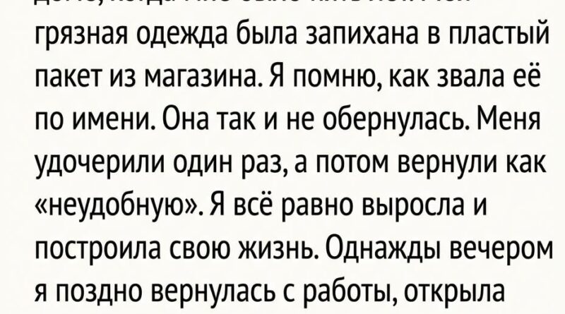 И вот, уже в двадцать лет, я стояла на пороге взрослой жизни. У меня была работа, маленькая квартира, своя рутина. Но каждый вечер, когда я закрывала глаза, я слышала тот же голос: мама… вернись. И всё равно, несмотря на всё, что случилось, я выросла. Я построила жизнь, несмотря на боль, несмотря на предательство.
