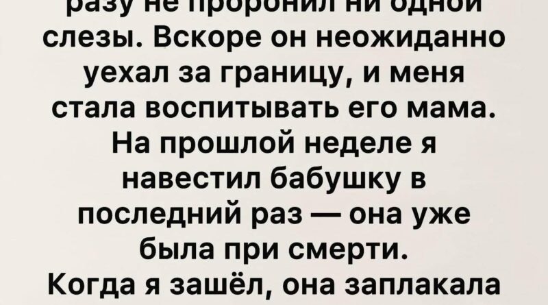 Когда я вошёл в её комнату, она открыла глаза, посмотрела на меня и неожиданно заплакала. Слёзы текли по её щекам, и в этот момент я понял — сейчас я услышу то, что она хранила столько лет. Она прошептала: