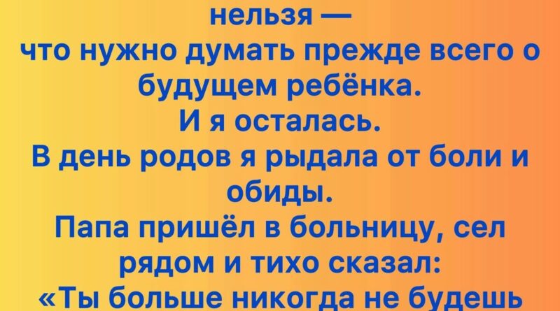 И тогда я поняла — слова отца «Ты больше никогда не будешь плакать» имели совсем другой смысл. Не прекращение слёз физически, а внутреннее освобождение. Его любовь и поддержка дали мне силы, которых я не знала в себе. Я родила, и в этот момент, когда в моих руках появился ребёнок, я впервые почувствовала, что могу быть сильной, несмотря на предательство и боль.