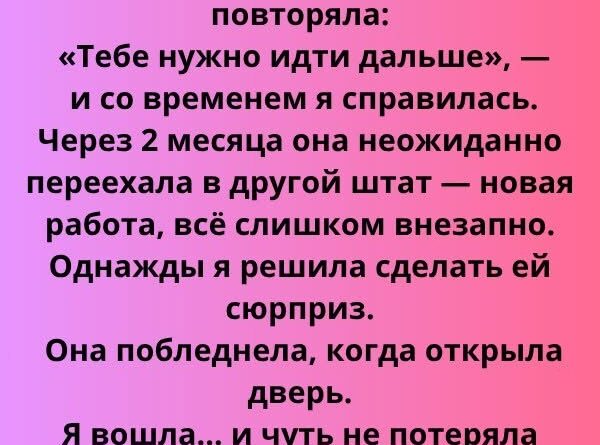 Это случилось через два месяца после того, как я начала «вставать на ноги». Она сказала, что получила предложение о работе в другом штате — что-то вроде руководящей должности, редкая возможность, шанс, который выпадает раз в жизни.