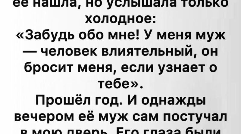 И вдруг раздался стук в дверь. Я замерла. Обычно это был сосед или курьер, но интуиция подсказывала мне, что сегодня что-то иначе. Я открыла дверь и замерла, когда увидела перед собой мужчину. Его глаза были полны слёз, его руки дрожали, а губы шептали что-то, что я не сразу смогла понять. Он протянул мне флакон с лекарством — фі…