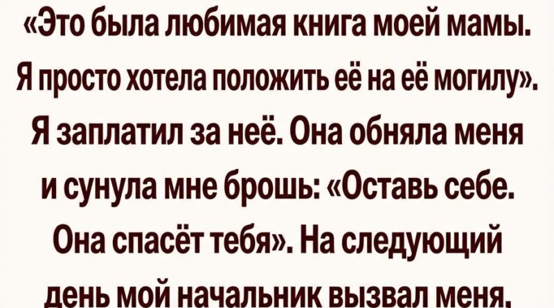 — Это была любимая книга моей мамы, — выдавила она сквозь слёзы. — Она читала её каждый год. Всегда говорила, что там написано то, что помогает не бояться…
