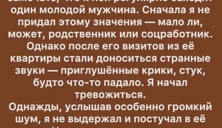 Тревога росла во мне, как заноза. Я пытался объяснить себе, что лезу не в своё дело. Что это не моя ответственность. Но каждый раз, когда вечером из её квартиры доносился глухой шум, я чувствовал, как внутри всё сжимается.