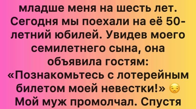 Но когда мы приехали, всё изменилось. Свекровь, заметив моего сына, не удержалась и объявила гостям: «Познакомьтесь с лотерейным билетом моей невестки!» Это прозвучало как удар ножом. Мой муж молчал. Я пыталась сдержать эмоции, но внутри меня бурлила смесь злости, обиды и растерянности.