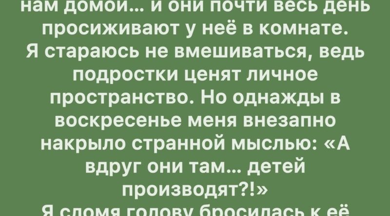 Моя дочь, Мария, была уже почти подростком. Ей четырнадцать, и, как любой человек её возраста, она жила в собственном мире, полном увлечений, книг и музыки. В последнее время её мир стал включать кого-то ещё — маленький, робкий, вежливый мальчик по имени Алексей. Каждое воскресенье он приходил к нам домой, и они проводили вместе целые часы. Я знала, что в подростковом возрасте такие отношения часто бывают поверхностными и слегка наивными, но всё же я пыталась оставаться спокойной.