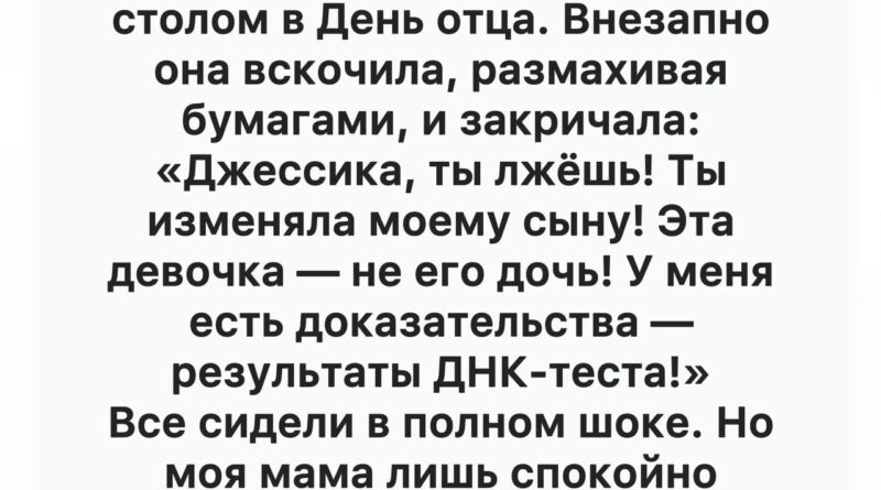 — Джессика! Ты лжёшь! — её голос резанул тишину, словно молния, ударившая в спокойный летний день. — Ты изменяла моему сыну! Эта девочка — не его дочь! У меня есть доказательства — результаты ДНК-теста!