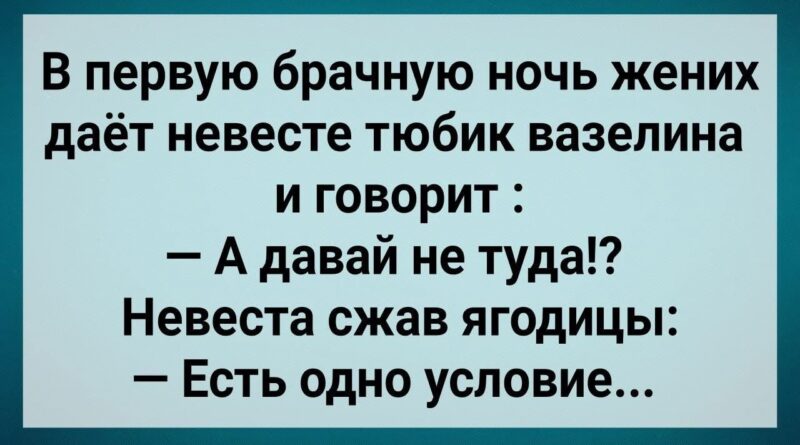— Слушай, — сказала невеста, — если мы сможем смеяться над этим вазелином, значит, сможем смеяться и над любыми проблемами.