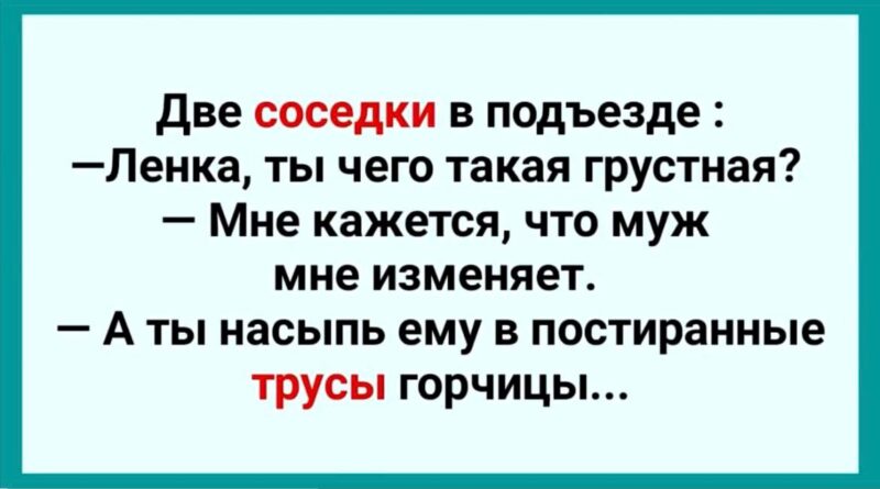 На следующий день Ленка задумалась о словах Тони. Она решила попробовать необычный способ «воздействия». Она купила горчицу, аккуратно засыпала немного в постиранные мужнины трусы и оставила всё на месте.