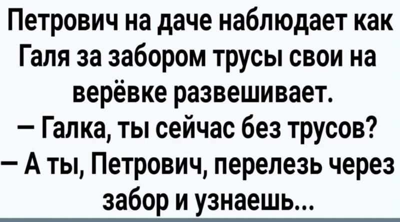 — А ты, Петрович, перелезь через забор и узнаешь.
