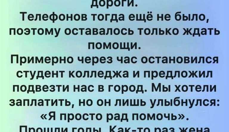 Той ночью на пустынной дороге он просто помог. Не искал выгоды. Не ждал награды. И годы спустя сделал то же самое — только цена оказалась куда выше.