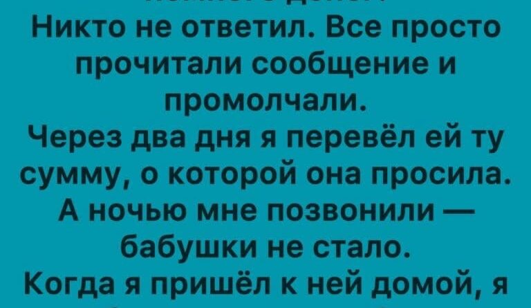 Прошло несколько недель. Семейный чат снова ожил. Люди писали о своих делах, делились фотографиями, шутили. Имя бабушки исчезло из разговоров быстро — пугающе быстро.