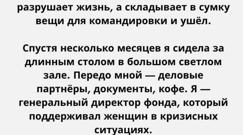 Марина была основательницей фонда, который поддерживал женщин в кризисных ситуациях. Она помогала тем, кто оказался в трудных обстоятельствах — женщинам, пережившим измены, насилие, потерю работы, семейные конфликты. И теперь она сама стала символом силы, примером того, как можно подняться после поражения.