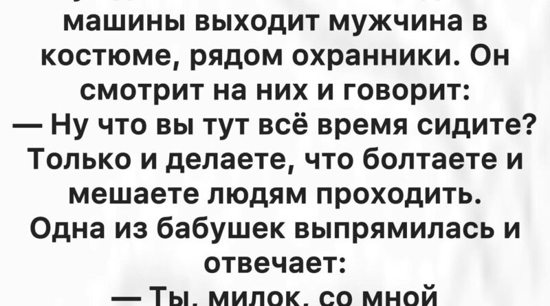 Разговор постепенно перешёл в шутки о соседях, о том, кто что купил в магазине, кто сегодня опоздал на работу, а кто оставил дверь открытой. Мужчина слушал, смеялся, иногда вставлял комментарий, который вызывал удивление у бабушек: о том, как сложно управлять людьми, о том, как важно уметь слышать других. Но здесь, на лавочке, эти слова казались не властными, а дружескими.