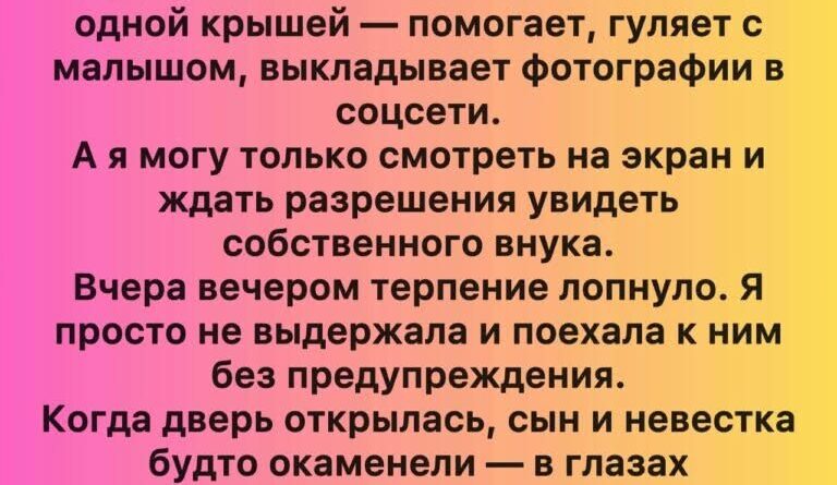Невестка выглядела иначе — осунувшаяся, с тёмными кругами под глазами. Но когда она увидела, как я смотрю на ребёнка — не с осуждением, а с тихой любовью, — её плечи чуть опустились.